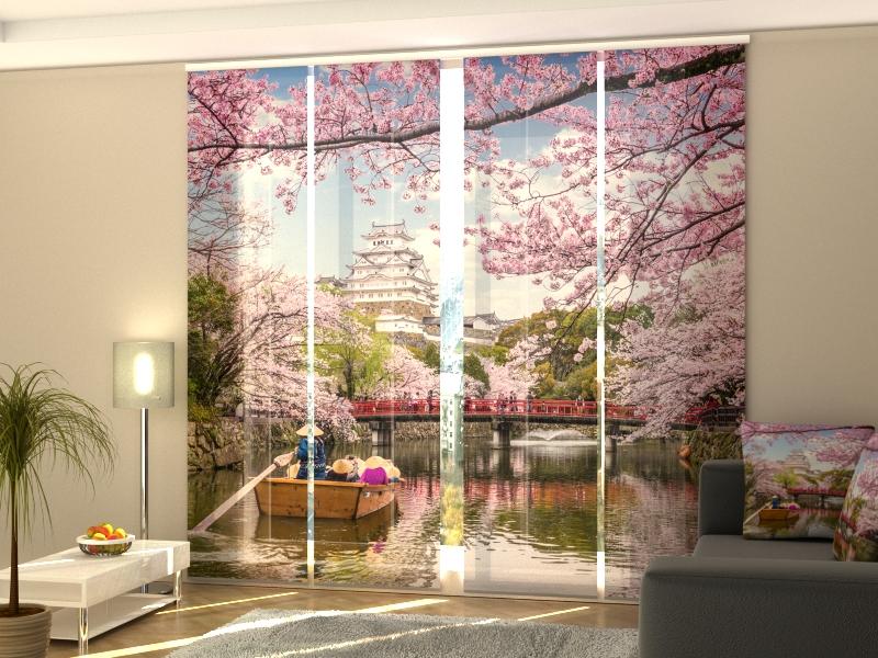 Set di 4 Tende a Pannello Primavera nel Castello Giapponese di Himeji