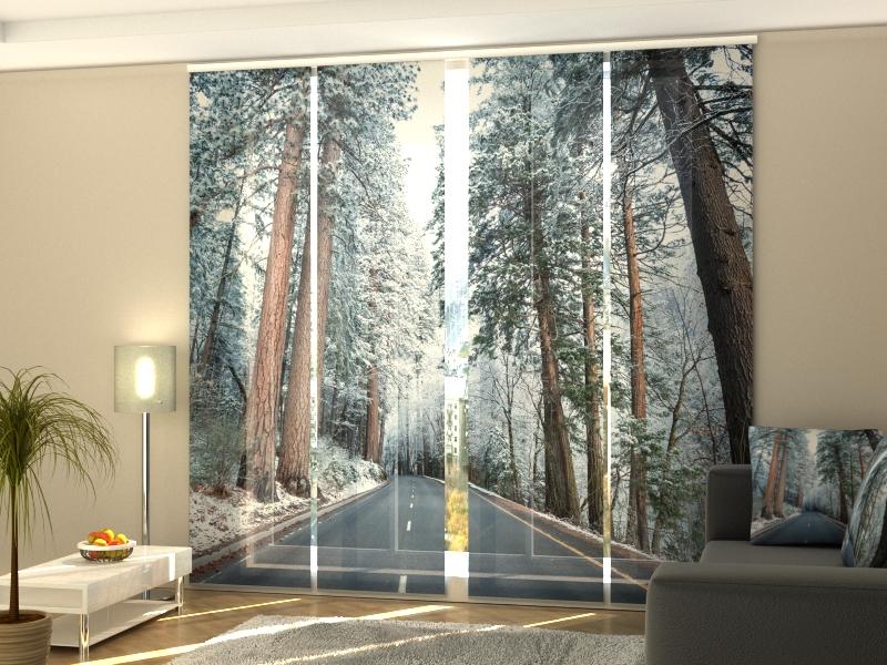 Set di 4 Tende a Pannello Strada e Foresta Innevate