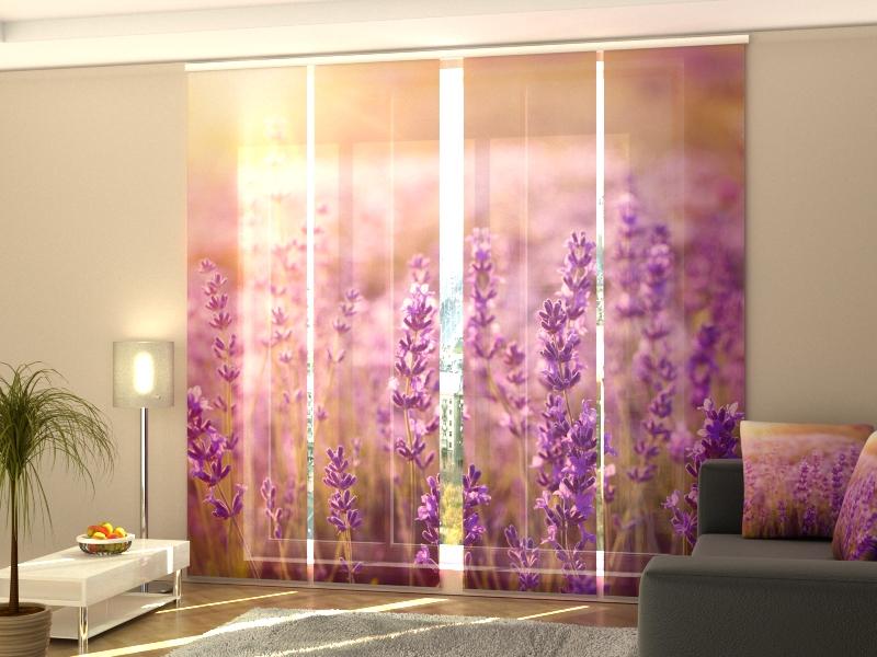 Set di 4 Tende a Pannello Tramonto su un Campo di Lavanda