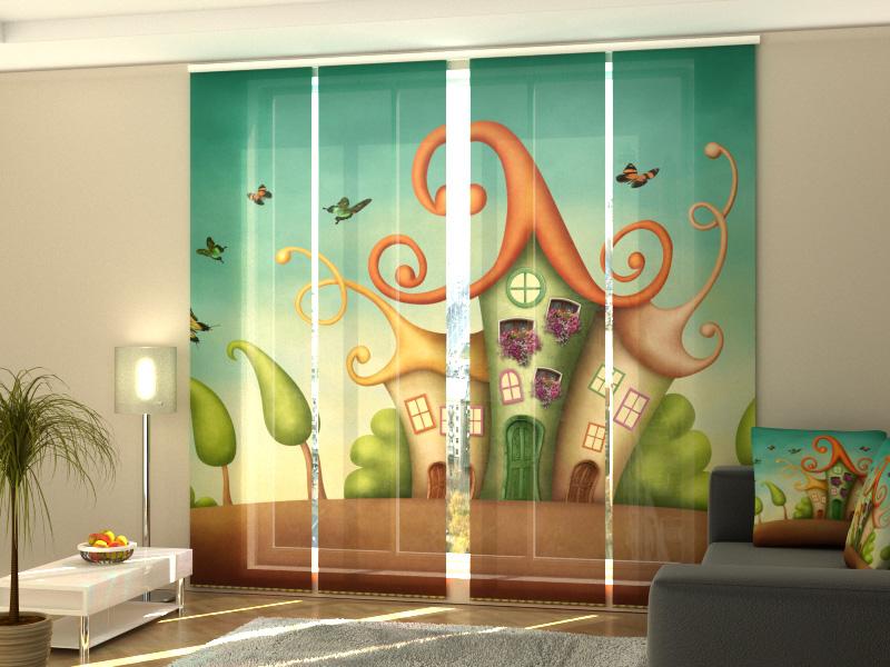 Set di 4 Tende a Pannello Tre Casette