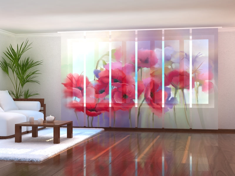 Set di 6 Tende a Pannello Acquerello Papavero Rosso