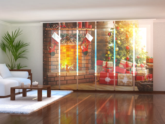 Set di 6 Tende a Pannello Albero di Natale Incandescente e Camino