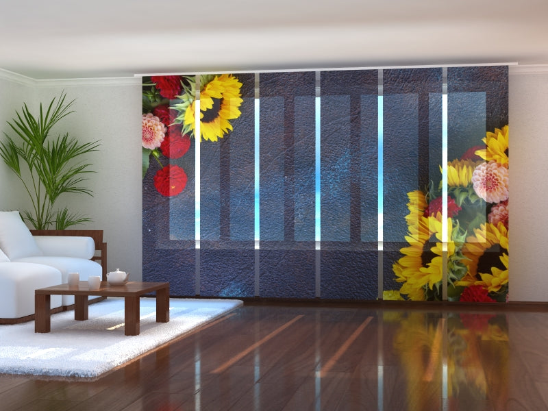 Set di 6 Tende a Pannello Dalie e Girasoli