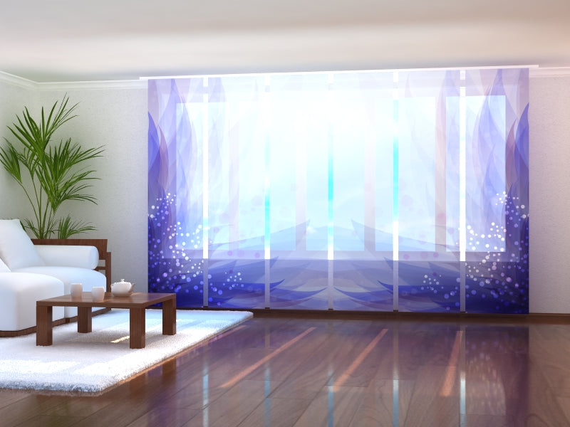 Tenda Panoramica "Spettacolare Illustrazione Blu" per bellissima vetrata panoramica, composta da 4 parti e realizzata in tessuto Silk.