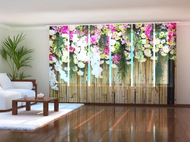 Set di 6 Tende a Pannello Fiori su Bambù