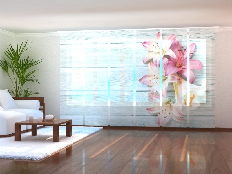 Set di 6 Tende a Pannello Gigli Colorati sul Legno