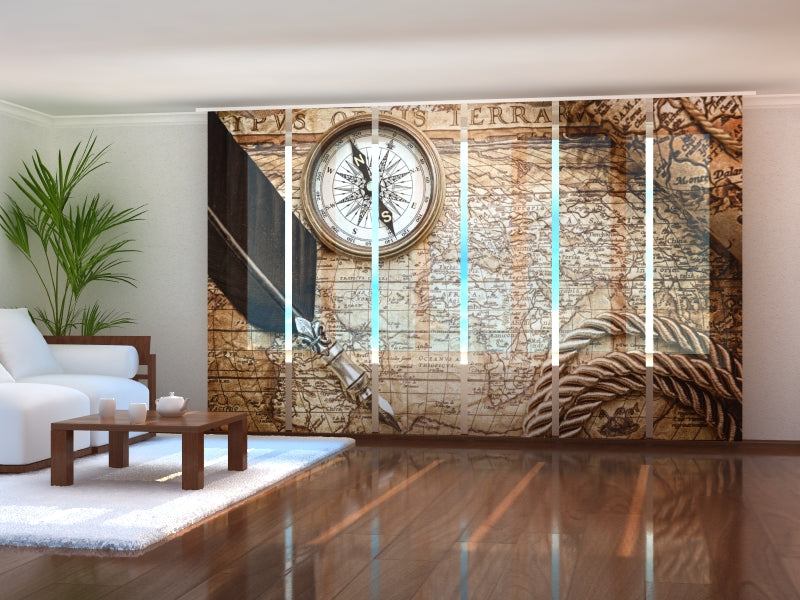 Set di 6 Tende a Pannello Mappa Vintage con Bussola