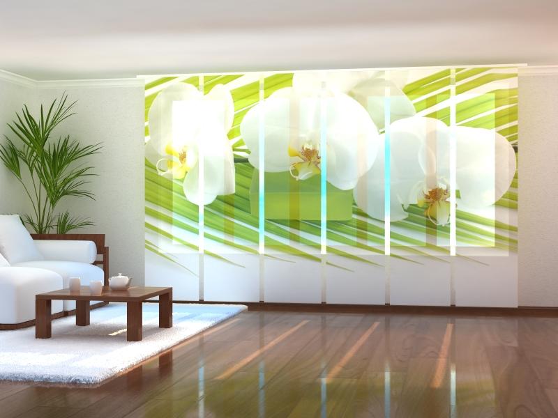 Set di 6 Tende a Pannello Ramoscello di Palma e Orchidee