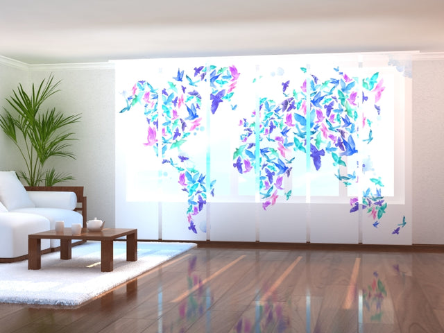 Set di 6 Tende a Pannello Uccelli dell'Acquerello sulla Mappa del Mondo