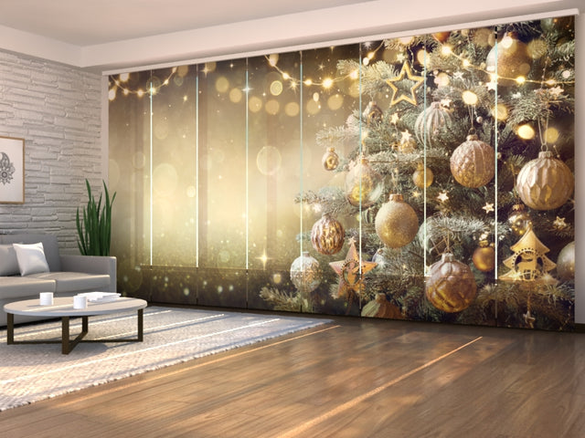 Set di 8 Tende a Pannello Albero Di Natale Con Decorazioni Dorate Retr��