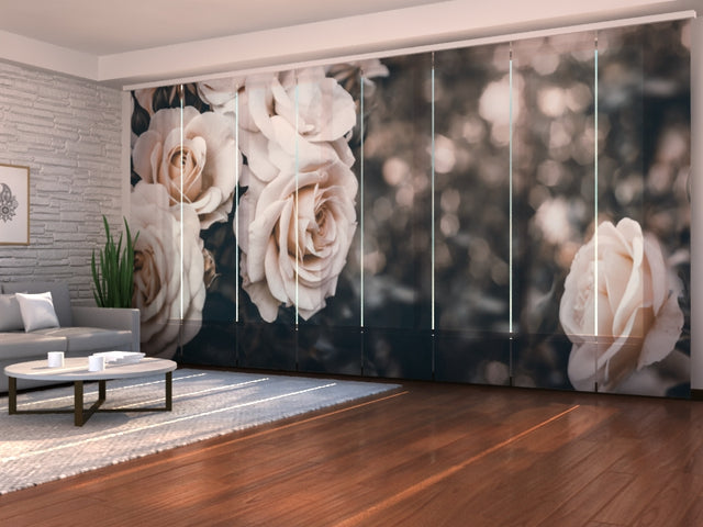 Set di 8 Tende a Pannello Belle Rose Pastello in Giardino