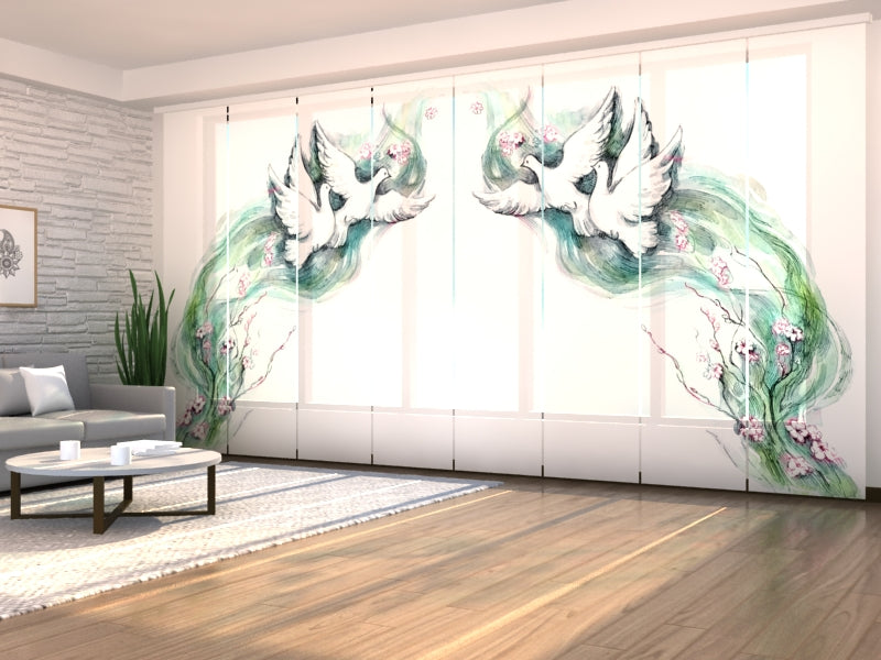 Set di 8 Tende a Pannello Incredibili Acquerelli Colombe e Fiori