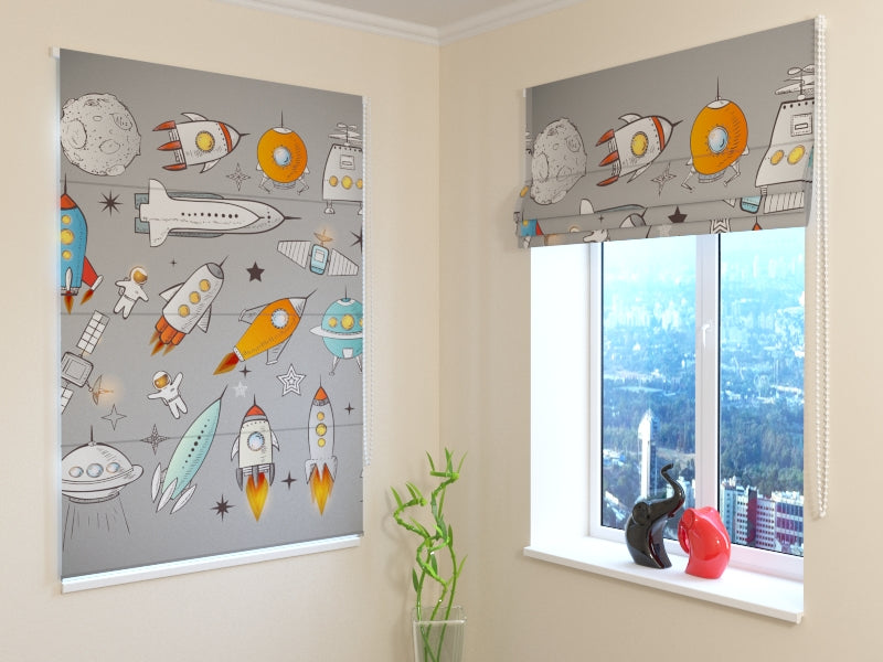Tenda Classica con stampa "Astronavi e Shuttle" in tessuto Screen, sistema di fissaggio - taschino per bastone.