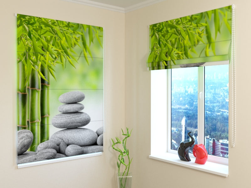 Set di Tende a Pannello in tessuto Screen "Orchidea Rosa con Bambù e Pietre".