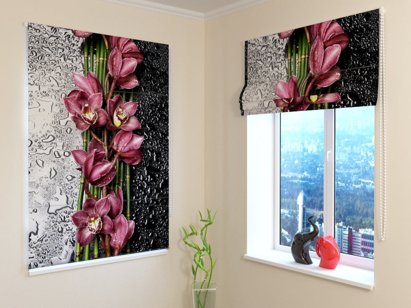 Set di Tende a Pannello "Orchidea Rosa con Bambù e Pietre"